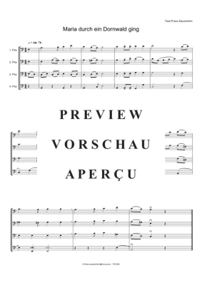 Maria durch ein Dornwald ging - Sheet Music for Quartet for 4x trombone Traditional