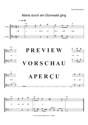 Maria durch ein Dornwald ging - Sheet Music for Duet 2x trombone Zaunschirm, Franz