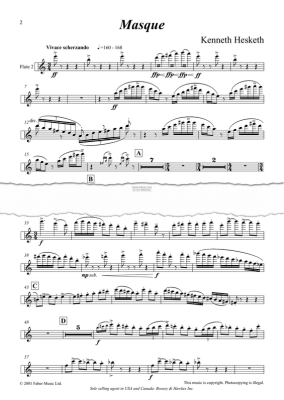 Flute part 2 to Kenneth Hesketh's Masque. Available to print instantly as digital sheet music.
