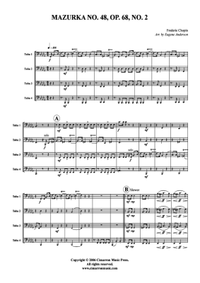 Mazurka Nr. 48 - Sheet Music for Tuba Quartet: 2x Baritone, 2xTuba Frederic Chopin (op 68, No. 2)