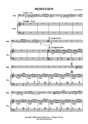 Meditation - Sheet Music for tuba + piano Kenneth Friedrich