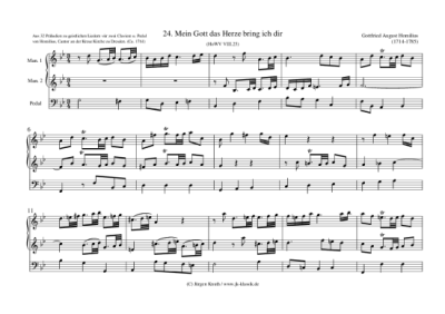 Mein Gott das Herze bring ich dir, Nr.24 (HoWV VIII.25) - Sheet Music for Organ Solo Gottfried August Homilius,1714-1785
