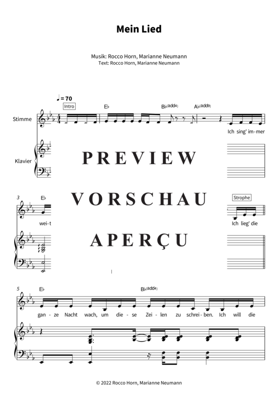 Dieses Notenheft enthält die Originalnoten zum Song "Mein Lied" von Berge für Klavier und Gesang. Leichter Schwierigkeitsgrad in Es-Dur mit Liedtext.