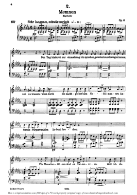 Memnon D.541 - Sheet Music for High Voice and Piano Franz Schubert