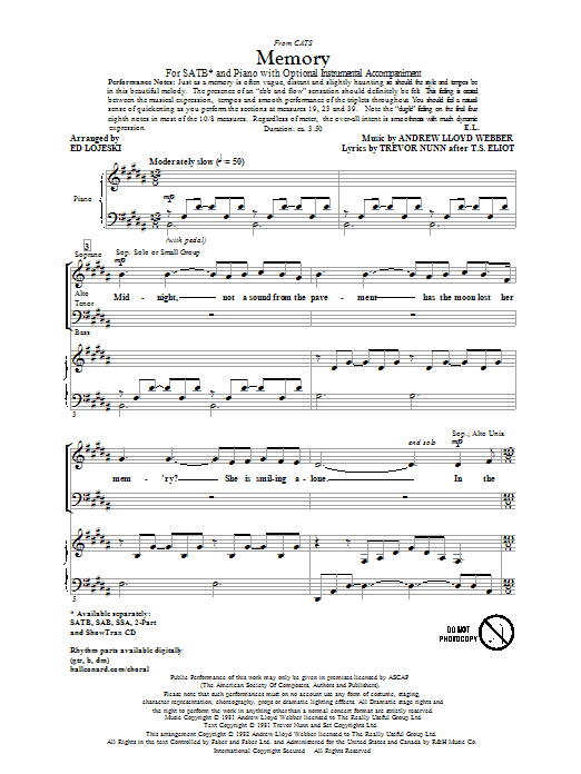 Memory (from Cats) (arr. Ed Lojeski) (SATB Choir)