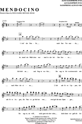 Mendocino - Sheet Music for Alto Saxophone Michael Holm