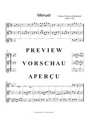 Menuet - Sheet Music for transverse flute/recorder trio Johann Christian Schickhardt