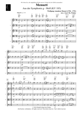 Menuett (aus der Symphonie g - Moll (KV 183)) - Quintett (arr. Gert Walter)