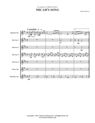 Micha´s Song - Sheet Music for Woodwind Ensemble SAAAATB Jeanie Murrow