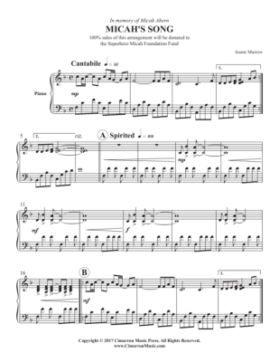 Michah´s Song - Sheet Music for Piano Solo Jeanie Murrow
