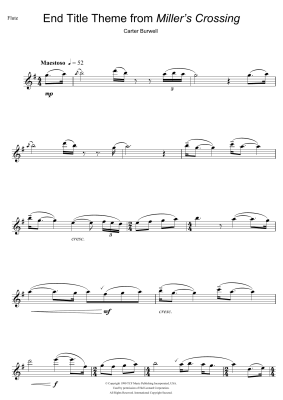Miller's Crossing (End Titles) - Sheet Music for Carter Burwell