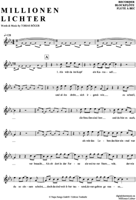 Millionen Lichter - Sheet Music for recorder Christina Stürmer