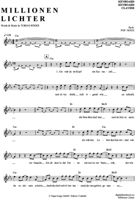 Millionen Lichter - Sheet Music for Keyboard Christina Stürmer