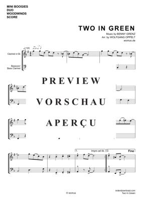 Mini Boogies - Two In Green - Sheet Music for Clarinet in B-flat and bassoon/bass Clarinet in B-flat Benny Grenz