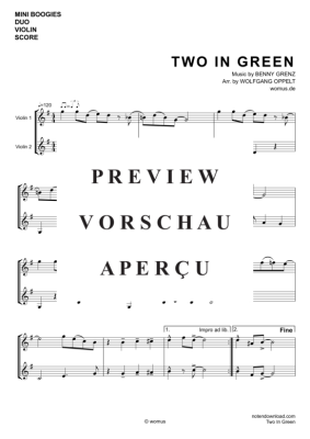 Mini Boogies - Two In Green - Sheet Music for Violin Duet Benny Grenz