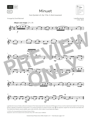 Minuet (Grade 3, list A1, from the ABRSM Clarinet Syllabus from 2026) - Sheet Music for Luigi Boccherini