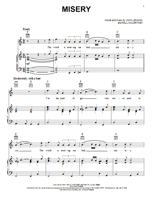 Misery (Piano, Vocal & Guitar Chords (Right-Hand Melody))