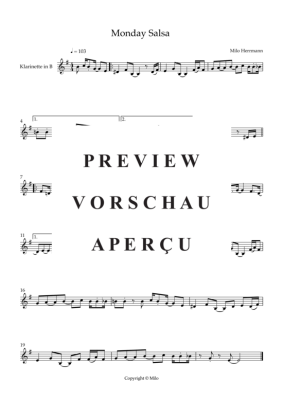 Monday Salsa - Sheet Music for Klarinette in B Solo + Playback Milo Herrmann