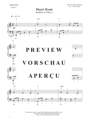 Moonriver (Level 1) - Sheet Music for Piano Easy Henry Mancini