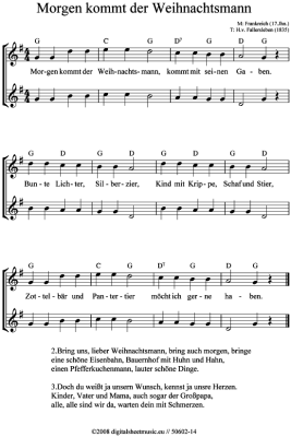 Morgen kommt der Weihnachtsmann - Sheet Music for Recorder Duet Weihnachtslied (sehr einfach)