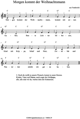 Morgen kommt der Weihnachtsmann - Sheet Music for Keyboard Weihnachtslied