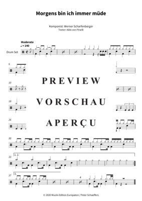 Morgens bin ich immer müde - Sheet Music for Drums Trude Herr