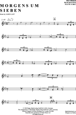 Morgens um sieben - Sheet Music for recorder James Last