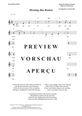 Morning Has Broken (C-Dur) - Sheet Music for soprano recorder solo + chords Cat Stevens