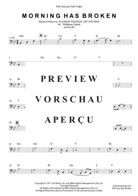 Morning Has Broken (POP SOLOS) - Sheet Music for Tuba/Euphonium + Chords Cat Stevens (arr. WO)