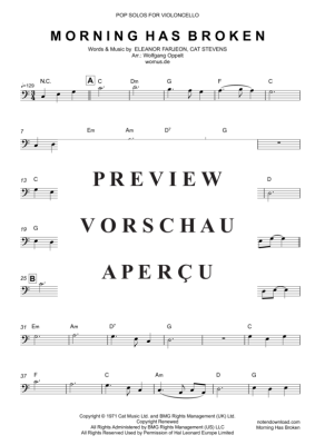 Morning Has Broken (POP SOLOS) - Sheet Music for cello + chords Cat Stevens (arr. WO)