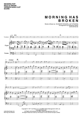 Morning Has Broken - Sheet Music for Solo instrument - bass clef: trombone, violoncello, tuba and organ Cat Stevens