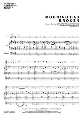 Morning Has Broken - Sheet Music for Solo instrument in C: flute, violin, oboe and organ Cat Stevens