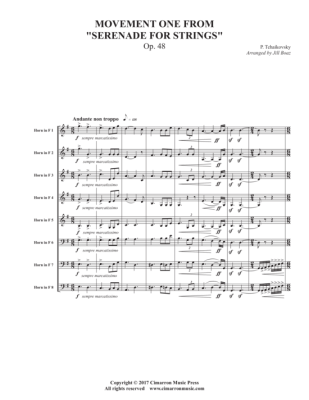 Movement one from Serenade for Strings - Sheet Music for Horn ensemble 1-8 horns Peter Tchaikovsky