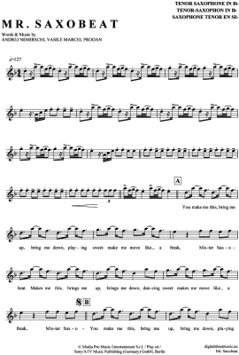Mr. Saxobeat - Sheet Music for Tenor Saxophone Alexandra Stan