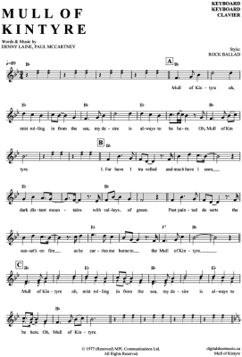 Mull of Kintyre - Sheet Music for Keyboard Paul McCartney