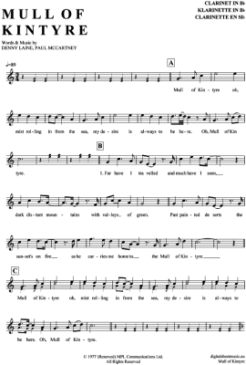 Mull of Kintyre - Sheet Music for Clarinet in B-flat Paul McCartney