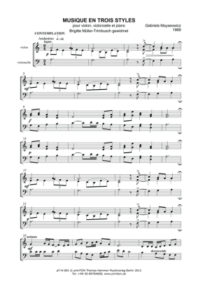 Musique en trois styles pour violon, violoncelle et piano (1969) - Sheet Music for Trio for violin, violoncello + piano Gabriela Moyseowicz