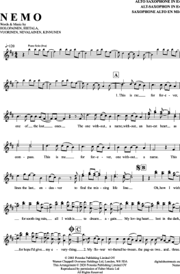 Nemo - Sheet Music for Alto Saxophone Nightwish