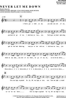 Never Let Me Down - Sheet Music for recorder Vize Und Tom Gregory