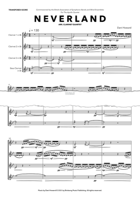 Neverland arranged for Clarinet Quartet by Dani Howard.