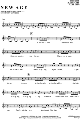 New Age - Sheet Music for recorder Marlon Roudette