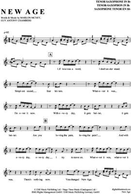 New Age - Sheet Music for Tenor Saxophone Marlon Roudette