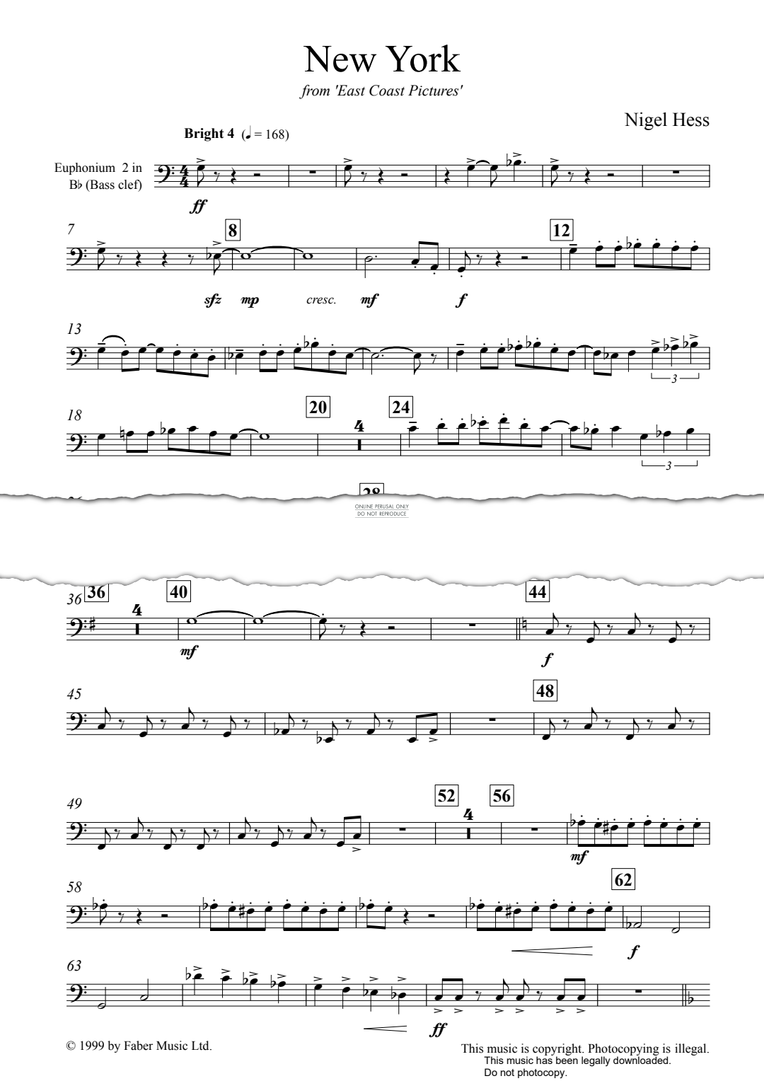New York taken from 'East Coast Pictures', composed by Nigel Hess. This is the bass clef version of the EuphoniumΒ 2 in Bb part available in digital sheet music format.