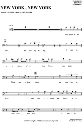 New York, New York - Sheet Music for Posaune / Bariton Frank Sinatra