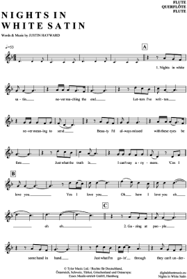 Nights in white satin - Sheet Music for transverse flute The Moody Blues
