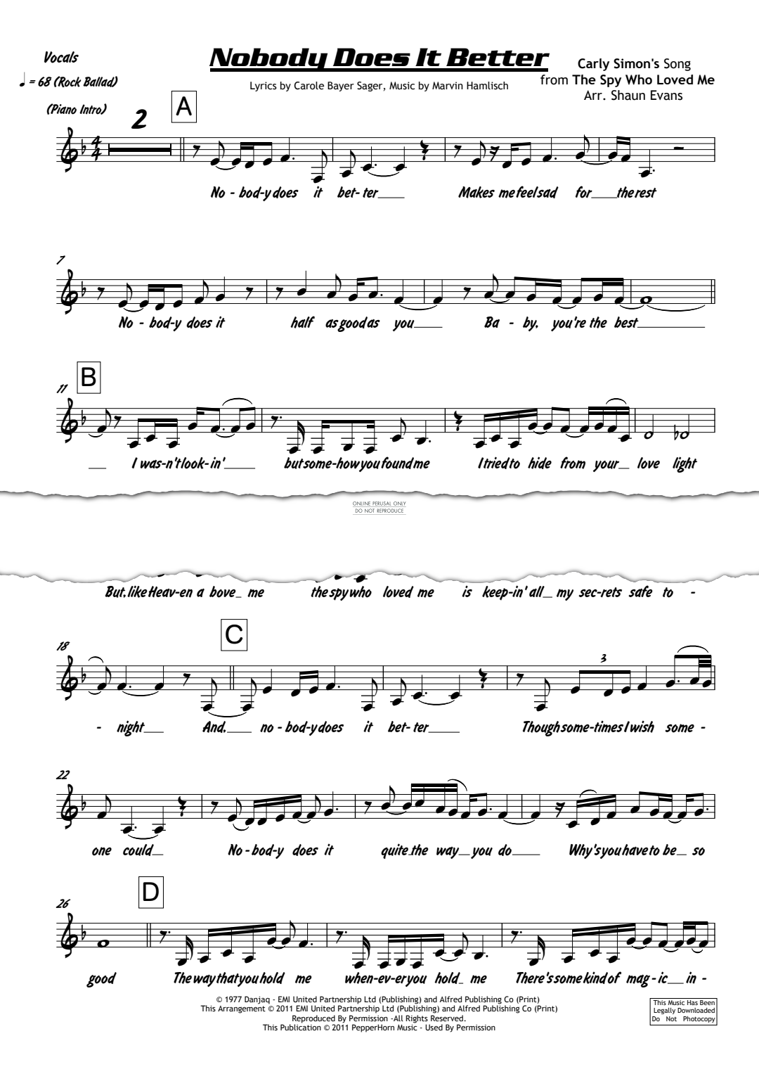 Nobody Does It Better - Sheet Music for Carly Simon