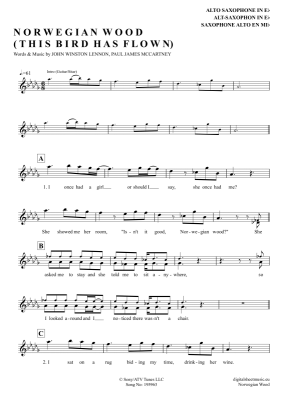 Norwegian Wood - Sheet Music for Alto Saxophone The Beatles