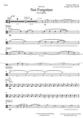 The viola part to Not Forgotten, composed by Matt Goss and arranged by Steve Sidwell for VE Day 2025. Available to print instantly in digital sheet music format.