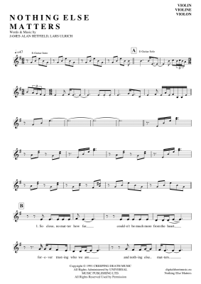 Nothing Else Matters - Sheet Music for violin Metallica