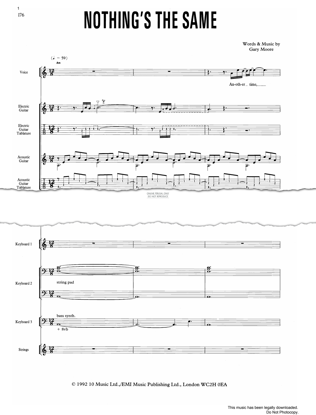 Nothing's The Same - Sheet Music for Gary Moore